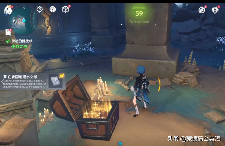 从密室宝箱中获得该系列关键任务道具:白夜王国地理水文测试