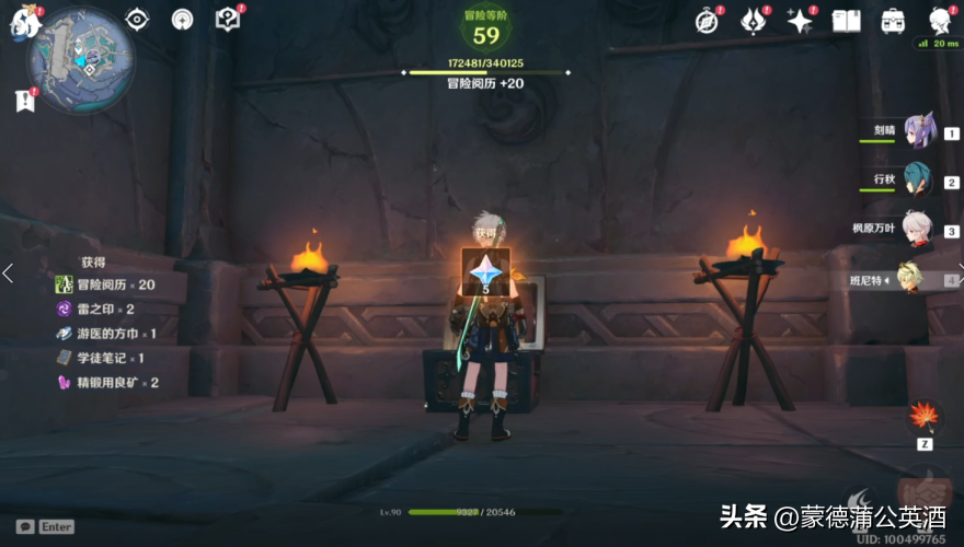 [任务奖励] 冒险经验*150、原石*20、摩拉*25000(支线任务还有额外奖励)。