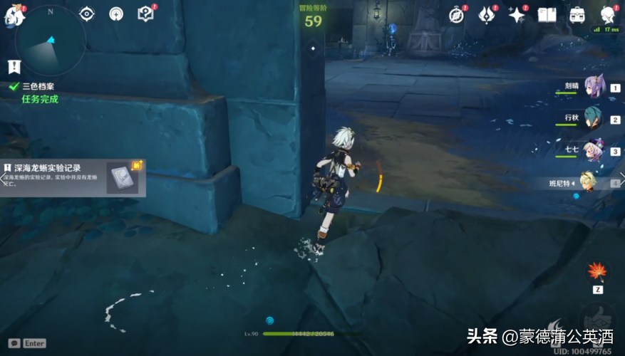 三。打开任务【三色档案】与禁区内的残影对话:然后前往附近的旧研究所遗址,使用相应的元素攻击点亮三根元素柱(冰/水/雷),击败三根[深海龙]……