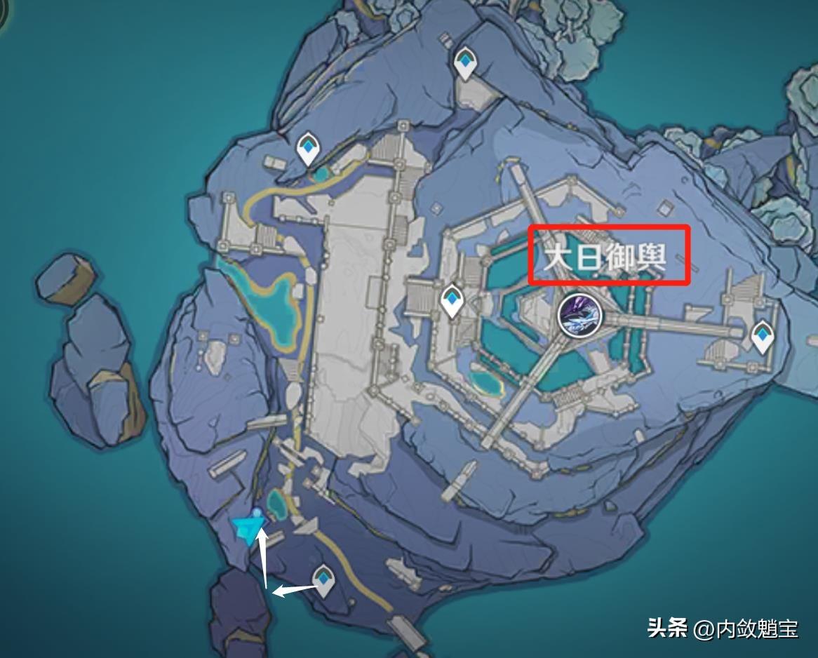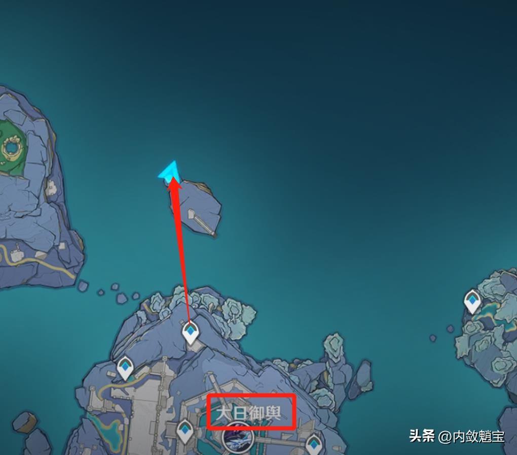 第二卷:深海龙蜥实验记录到达大日宫上方的传送点,向地图上方飞去对面的岛屿。