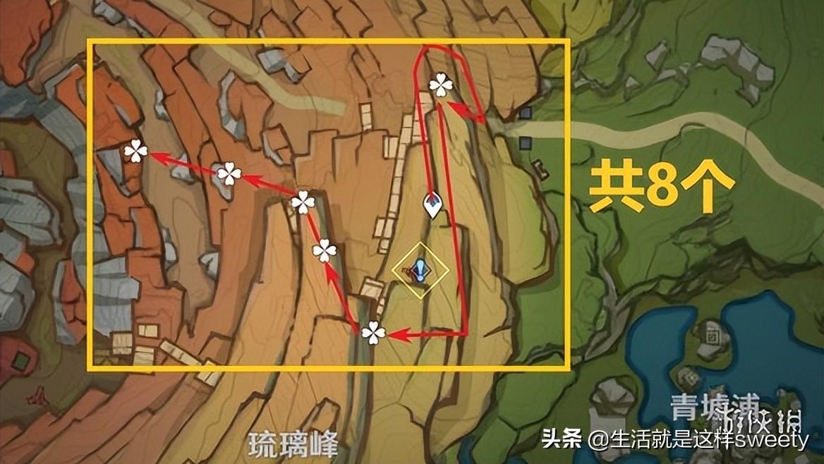 接下来是收集地点,大部分都在悬崖顶上。除了有点麻烦之外,它们并不难找到。