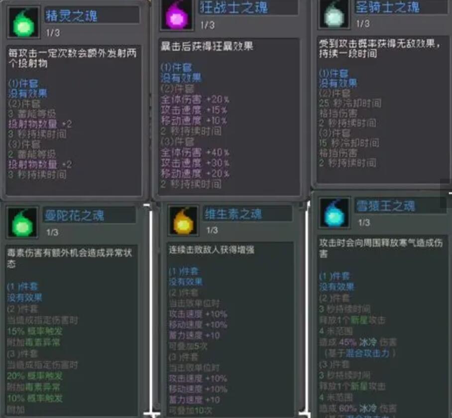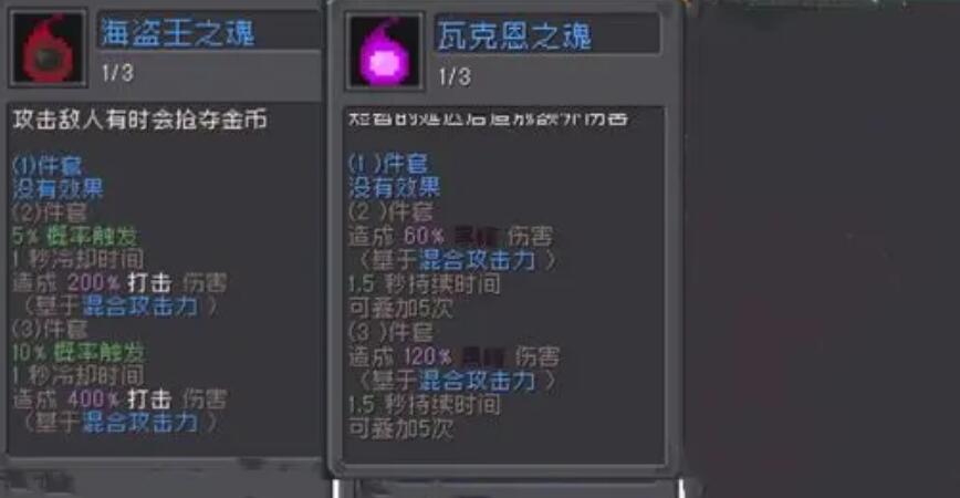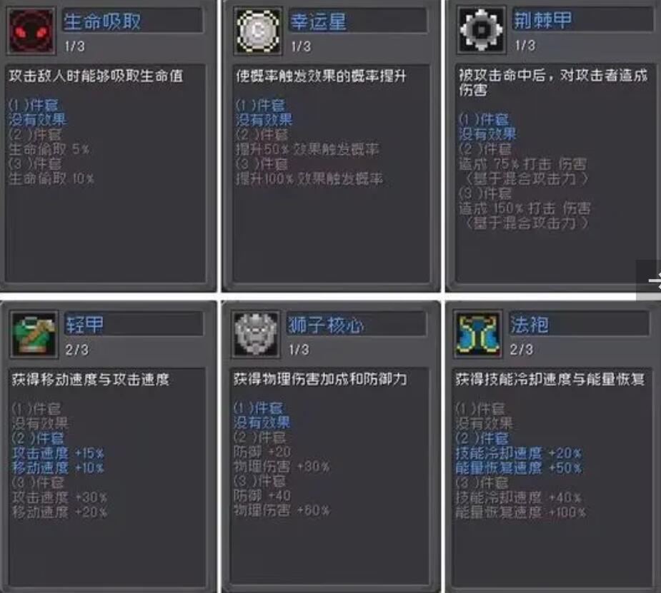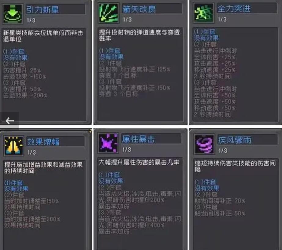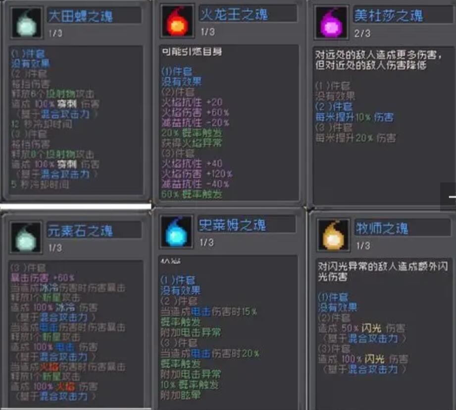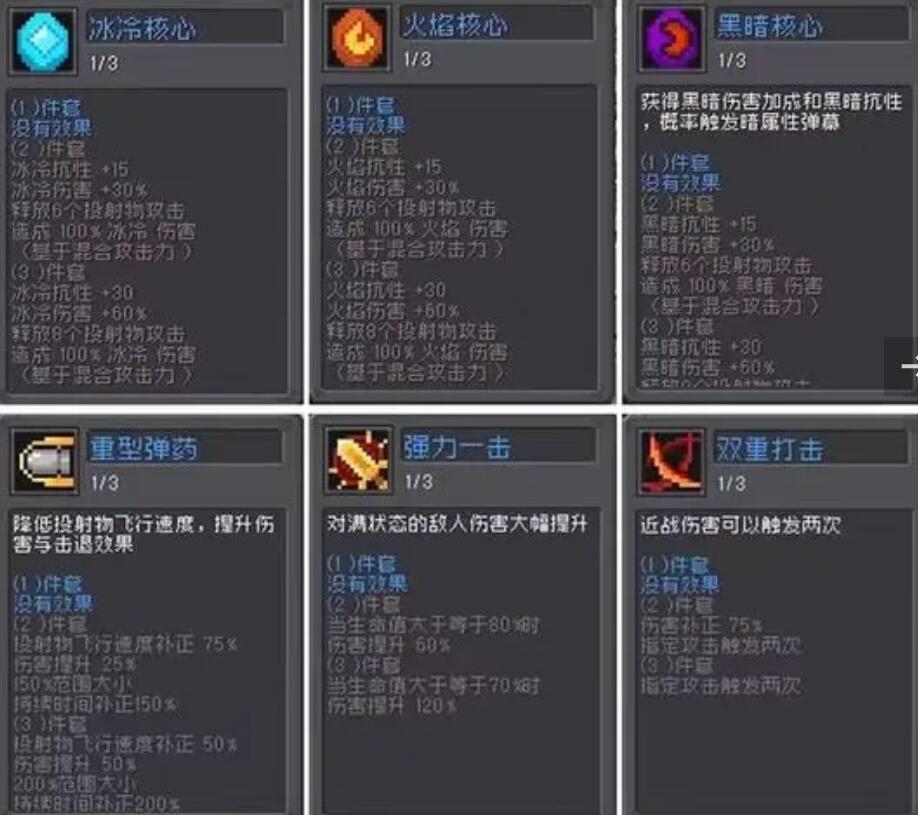 2件套:火、冰、电、毒、闪光、黑暗增加暴击率200%。