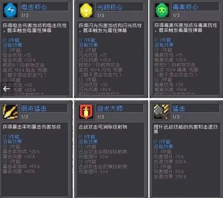 6.触电核心:获得触电伤害加成和触电抗性概率触发电击弹幕