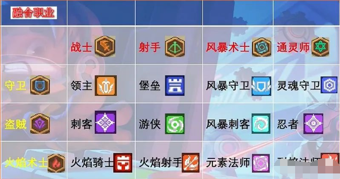2.战士(初始职业)+盗贼(初始职业)=刺客(融合职业)。