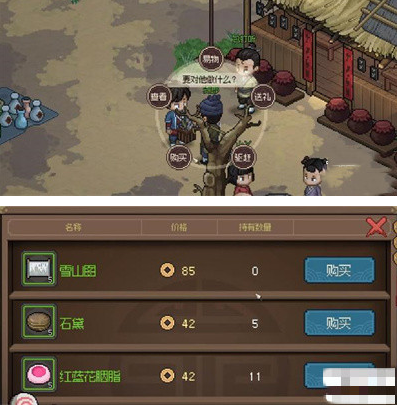 1、首先我们去新手村找卖家,购买如图所示的雪山图。