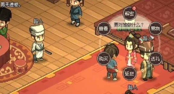 1.必须去城里的客栈。进入剧情后与江湖人对话。商家会告诉我们营业时间。