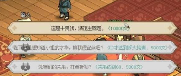 1、首先我们需要有十多贯的钱。与楚乡市福临客栈的商人A对话,开启拍卖会。
