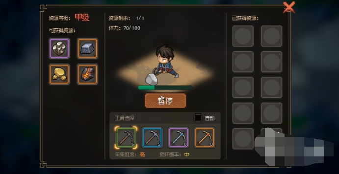 3.我们提升臂力的经验与采集到的物品等级无关,而是与资源本身的等级有关。分为A、B、C、D四个等级,分别提供4/3/2/1经验值。角色的先天属性最多只能提升到10点。 1到2级需要50点经验值,2到3级需要100点经验值,3到4级需要150点经验值,9到10级需要450点经验值。