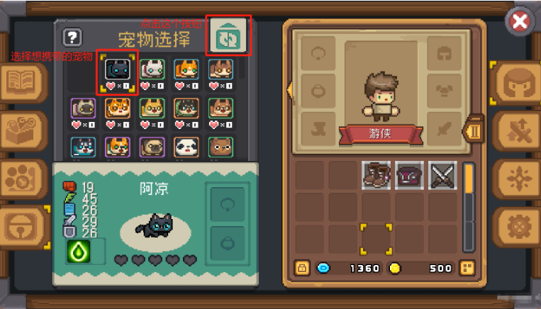 注意:拾取食物后,将其放入宠物的背包中即可喂食。您可以对其进行升级以增加宠物的饱腹感。