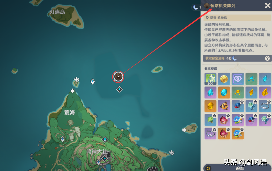 1.【纪念冰宇】和【坚忍机关】位于道孚闪电岛的水下秘密通道内。恒定机关阵BOSS掉落时,如果海底传送锚点没有打开,可以通过传送孔从左上方连接到岛屿。