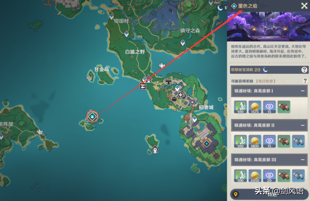 2.【名刀铲】位于丛林区域,如下图。制作一张长图,可以保存并查看。