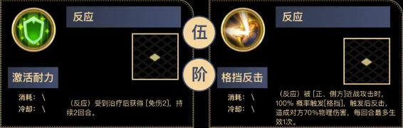 2.格挡反击:近战攻击时,100%概率触发格挡技能。触发后,反击会对对方造成70%的物理伤害;