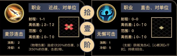 2.麦莎冲锋:选择自己交叉范围内的一名敌人,向侧面冲锋,造成130%的伤害;