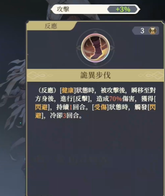 1、科尔生命值健康时,可以反击并获得闪避,这是一个攻防兼备的强大技能。