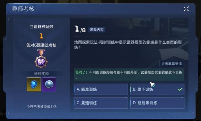 1、地图探索玩法限时训练中显示武器模型的终端属于什么类型的训练?