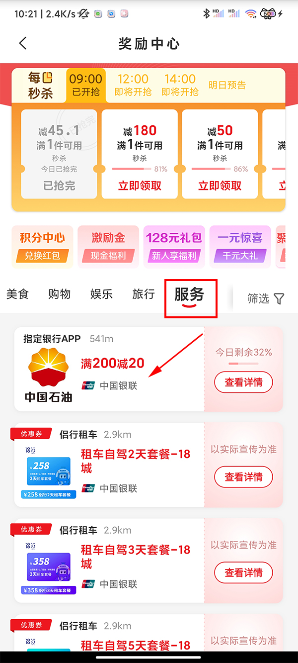 云闪付加油优惠在哪里领取?有两种方法可以在奖励中心或城市服务处获取联合快速通行证加油折扣。