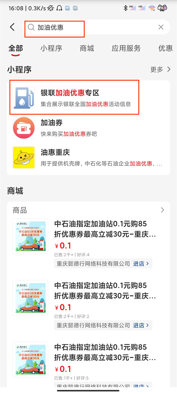 1.登录银联闪付,点击顶部搜索框,搜索燃气折扣,点击进入银联燃气折扣专区。