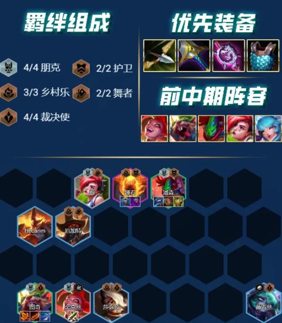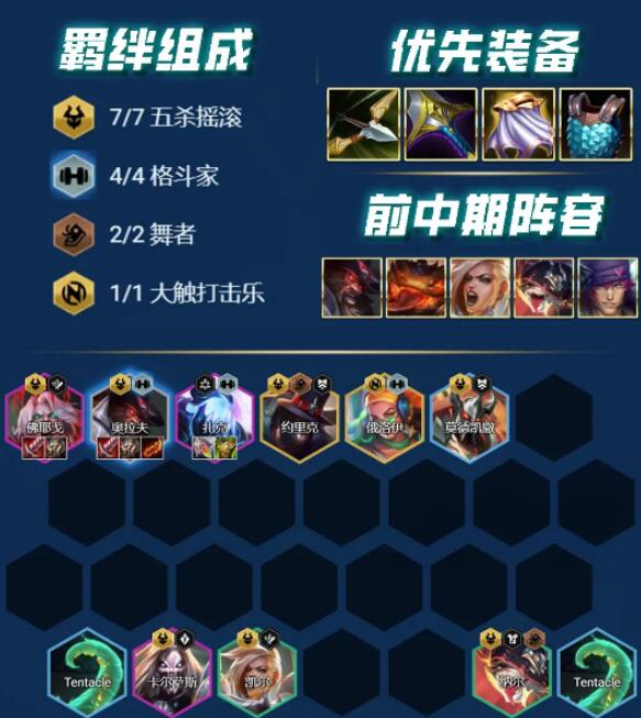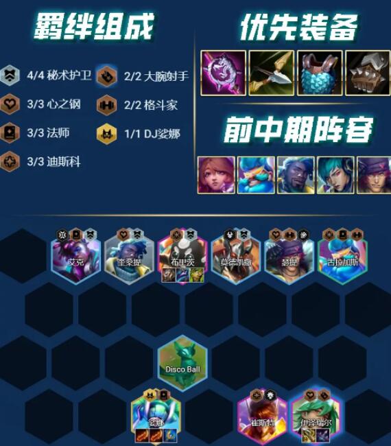 羁绊:6 个战士、3 个电子舞曲、2 个声音刺客、1 个Big Touch 打击乐手