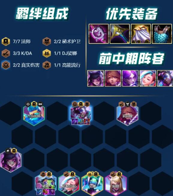 羁绊:7 名法师,3K/DA,2 真实伤害,2 奥术守卫