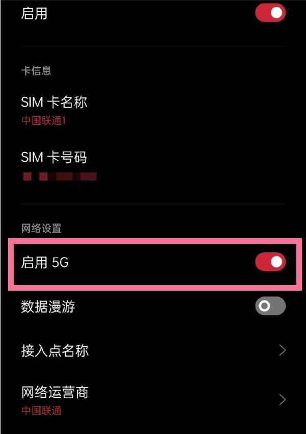 3. 单击启用5G 右侧的按钮,关闭5G。