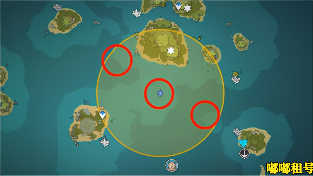 圆圈内的海域会有三块岩石,这三个地方都被气泡包围着。您可以通过与气泡互动来进行调查!