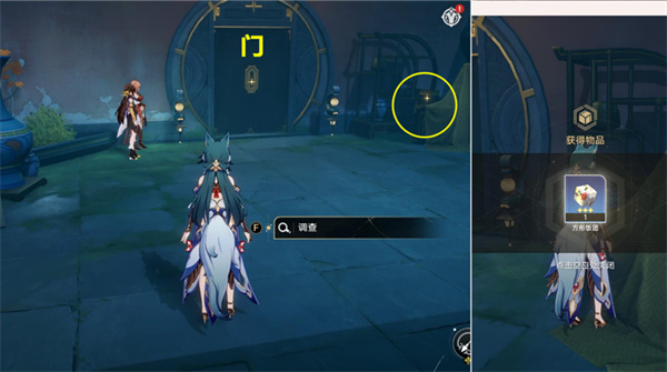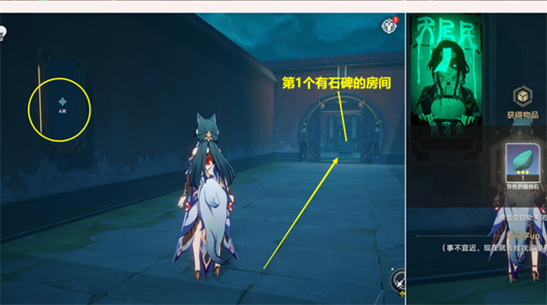 3.调查墙上的广告牌后,获得[奇色磁石],然后前进,进入第一个房间。