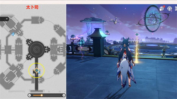 2.传送到睢远右下角,乘电梯上楼,完成对话,使用聪明鸟收集睢阳。