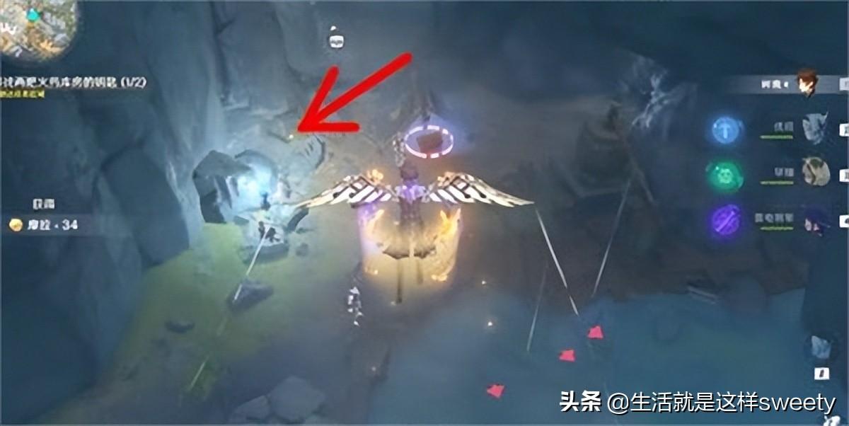 4、到了这个位置,我们挂九块石头碎片的任务就已经完成了。完成它的难点在于我们必须获得两把钥匙。找到这两把钥匙后,我们的任务就变得容易多了。