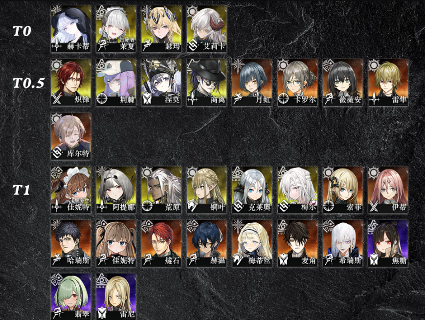T0.5:烈风、荆棘、尼莫、尚莉、月红、卡罗尔、薇薇安、雷霆隼、库尔特