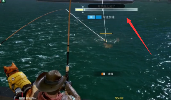 4、最后选好饵料后,按住抛出,等待饵料上钩。出现电源条后,继续拉动即可钓鱼。
