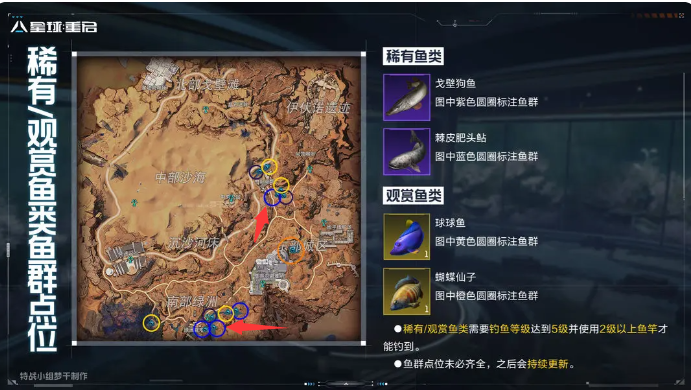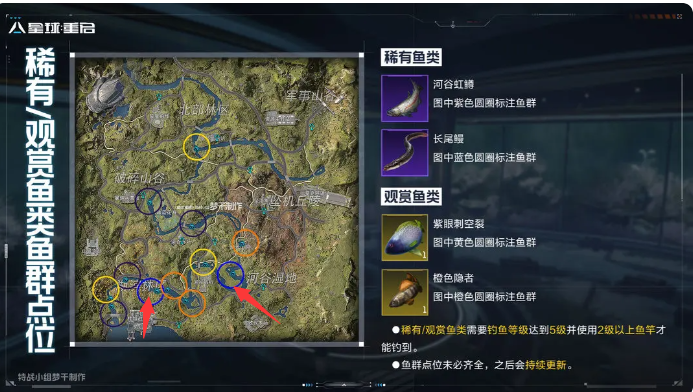 在星球重启游戏中可以捕获稀有的鱼。很多朋友不知道星球重启游戏中哪里可以钓到稀有鱼。所有珍稀鱼类和观赏鱼都可以在下图中的地点找到。以下是小编为玩家带来的重启星球中的稀有鱼类地点汇总。感兴趣的玩家可以过来看看!