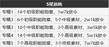 其他专业专精3和5都有两个加成。每个奖励消耗专精3 和5 材料。