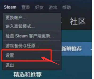 1、首先双方需要登录Steam账户,打开网页点击右上角【Steam】挑战,打开小窗口点击【设置】;
