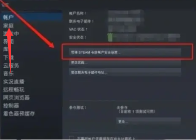 3、接下来,在账户界面,点击右侧界面的【管理Steam Token账户安全设置】;