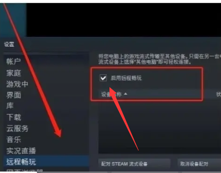2、然后在设置页面找到【远程播放】,勾选右侧页面的【启用远程播放】;