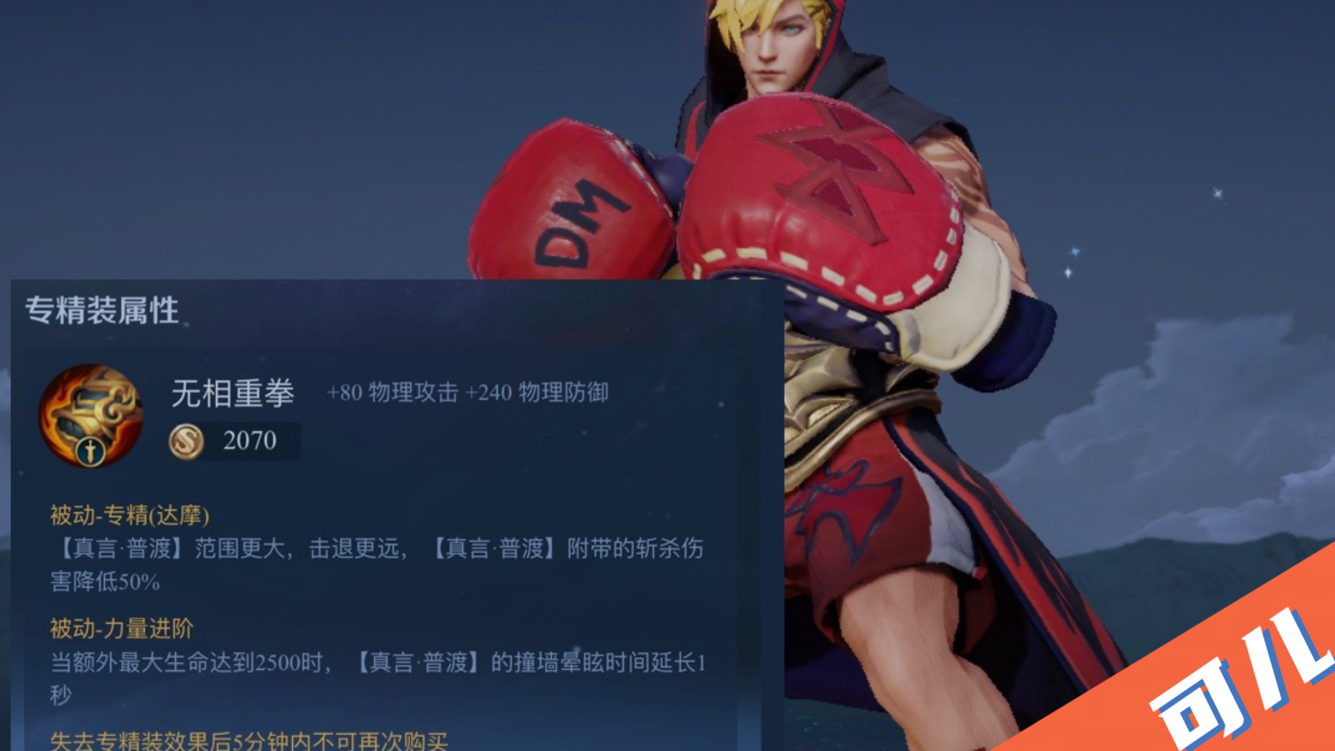 达摩:增加大招的击退距离和范围,但代价是减少大招第二阶段的伤害。当额外生命值达到2500时,终极技能的昏迷时间增加一秒。