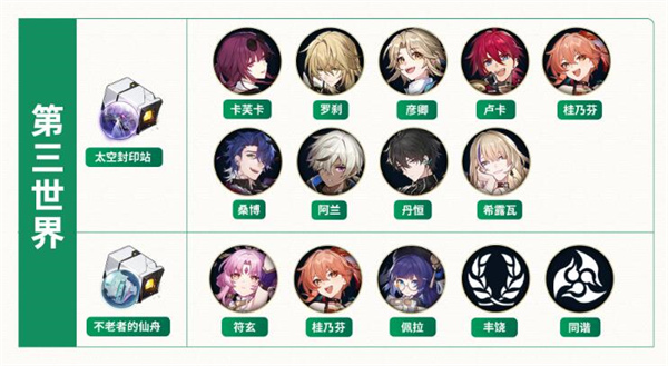 11.【空间封印站】:卡夫卡、罗刹、延庆、卢卡、桂乃芬、三宝、阿兰、丹恒、希露娃。