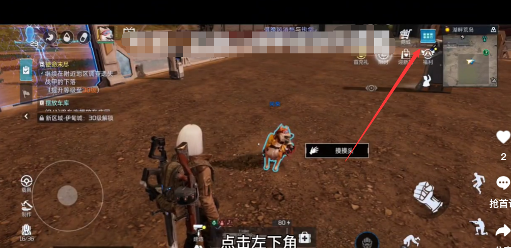 1、首先进入游戏页面,点击右上角【六点】图标,打开菜单栏;