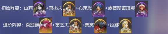 1.初始阵容:尤里+迪米乌哥斯+雅儿贝德+露普丝雷其娜