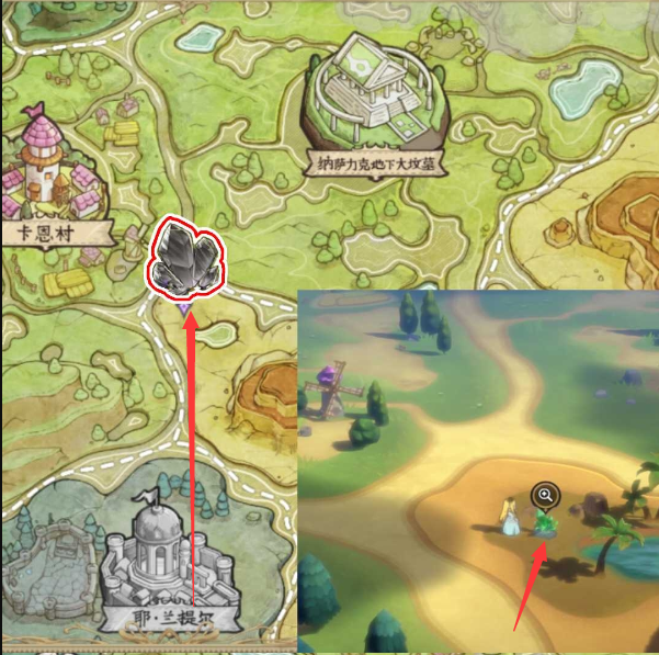 3、浸透魔力的水晶可以在下图所示的位置采集;
