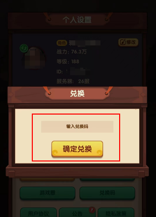 4、跳出小窗口,在上方输入兑换码即可领取福利。