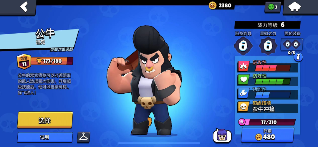 “公牛”布兰科也是一个坦克角色。他的生命值比布尔普里莫少,但普攻是中距离扇形霰弹枪,每秒伤害能力更稳定。