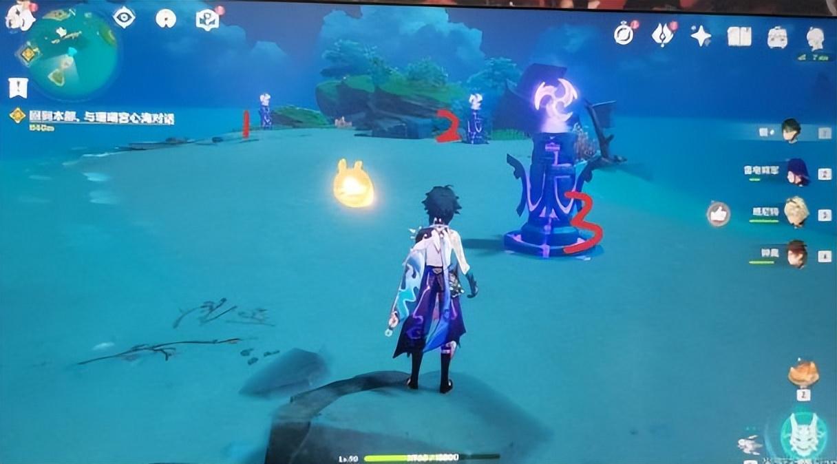 2.到达地点后,可以看到三个不同的雷元素块。玩家必须使用雷元素来攻击闪电;
