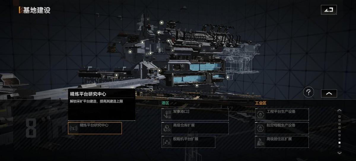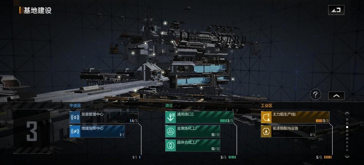 三个通用港口、战舰生产线和贸易管理中心达到适当水平,优先考虑升级成本。在升级成本的过程中,优先考虑填充贸易管理中心和升级驱逐舰船坞设备。先升级驱逐舰码头设备,再加固指挥中心。等以后有空闲的时候,金属精炼厂和晶体合成厂就需要补充。此时应该已经是晚上了,可以直接继续升级。