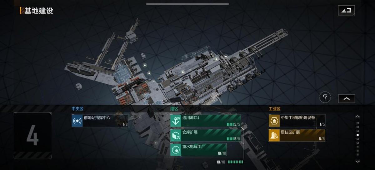对于民用玩家来说,我们可以根据工艺将通用港口、仓库、联合生产线、护卫舰船坞设备、工程船坞设备+1级升级。之后可以优先填充护卫舰船坞设备。护卫舰是大禹、孟新都舰队的重要组成部分。