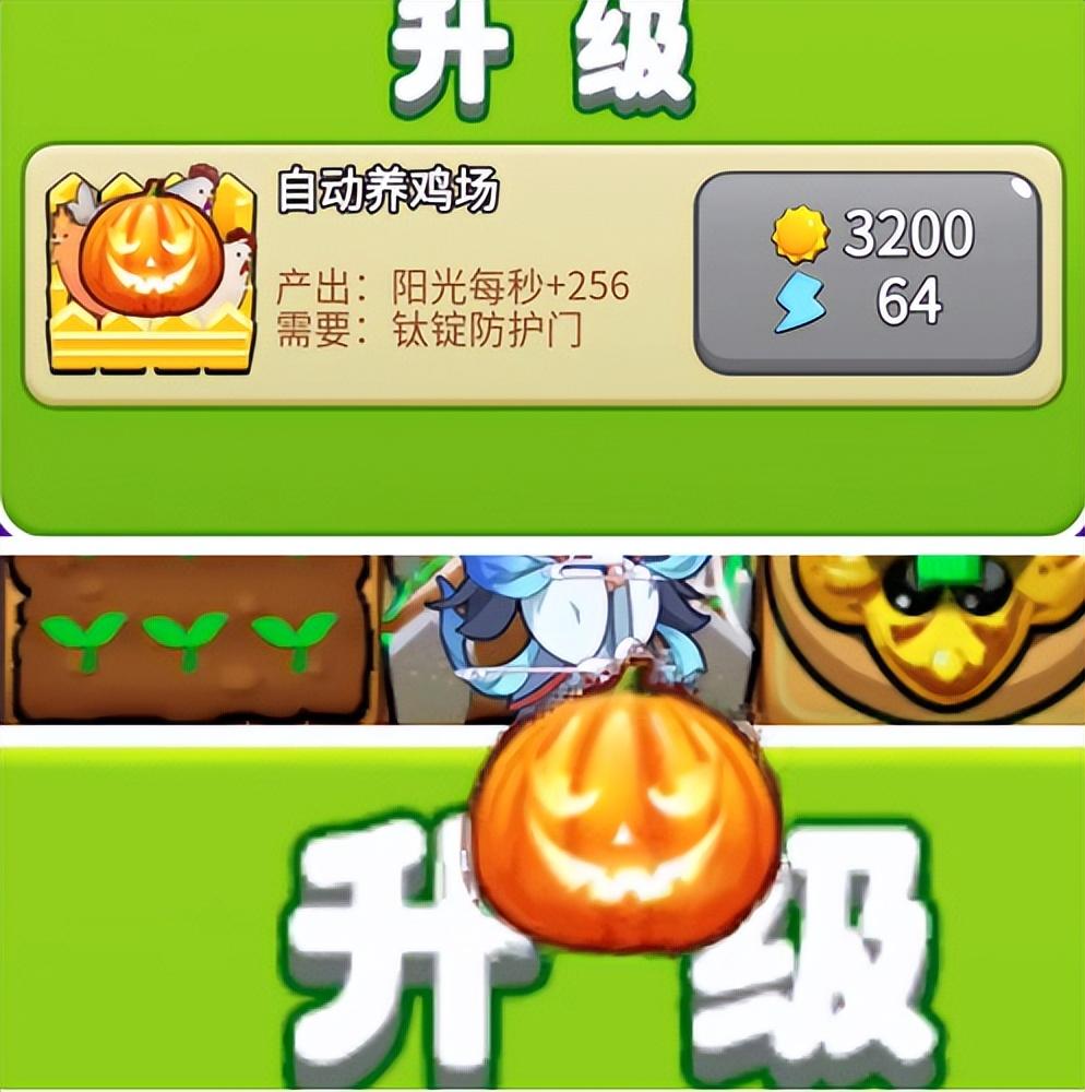 5。然后我们再次升级农田得到一个自动养鸡场,然后我们把南瓜拖到图标里。