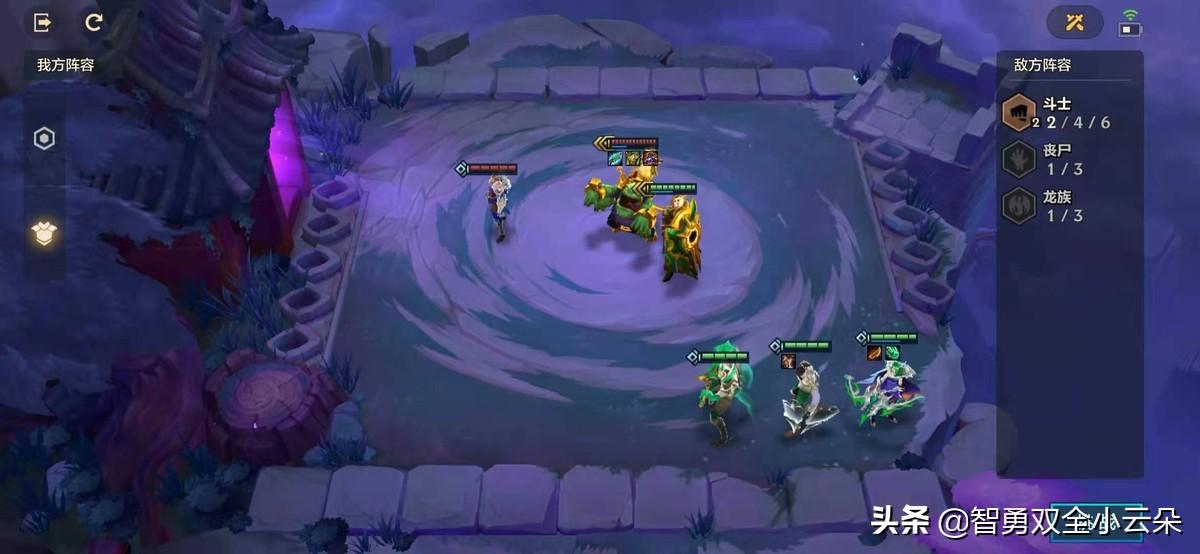 我们将装备组合成青龙剑爆和科技枪,放到了维克斯身上。我们让维克斯站在角落里,以确保他的技能输出到更多的敌人;力士可以在角落提供盾牌,记得占用空间!