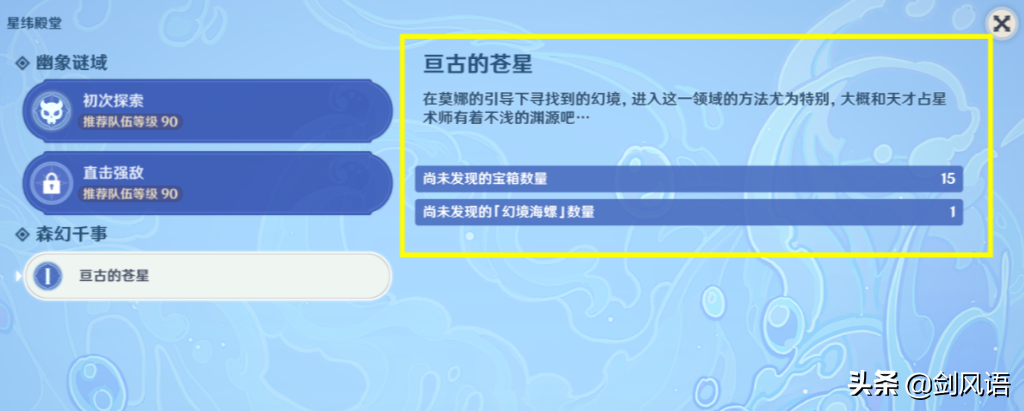 完成主线任务“永恒苍星”后,可以收集15个宝箱和1个海螺。
