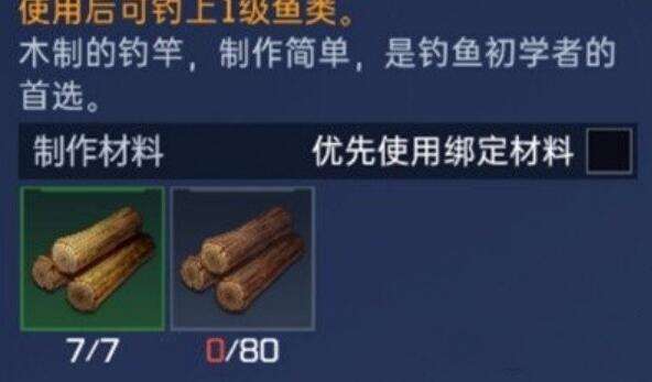 1、一级木钓竿需要7个杉木,80个松木。