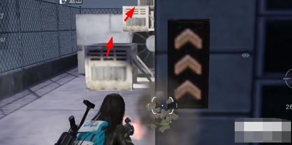 3.我们上到楼上后,看到拐角处的空调扇,直接踩过去跳过去就可以了。